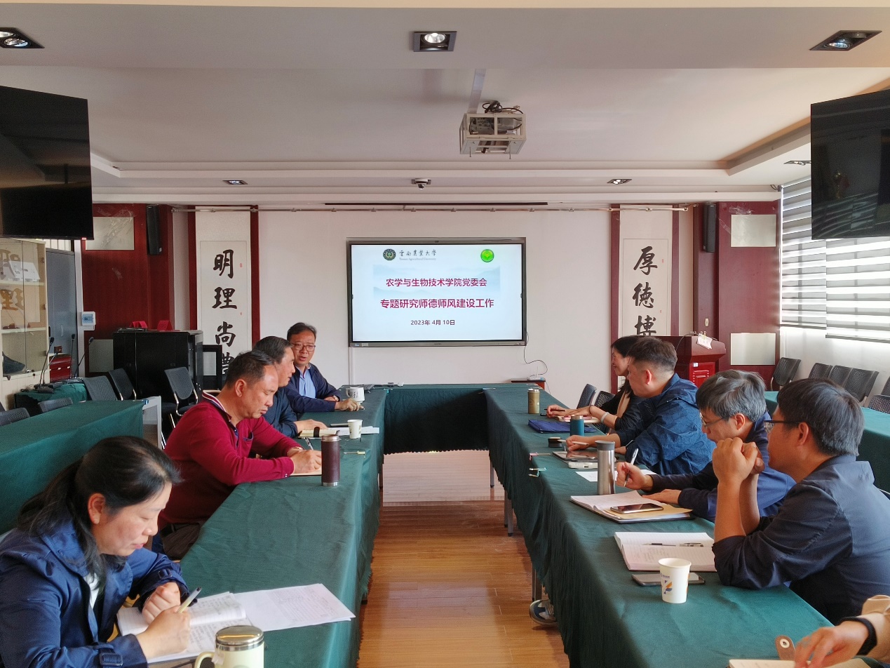 为深入推进学院师德师风建设,结合推进“清廉学校”建设,加深教师的职业道德观念,严明政治纪律和工作作风,引领教师争做“有理想信念、有道德情操、有扎实知识、有仁爱之心”的“四有”好教师,推动学院师德师风建设工作取得实效。2023年4月10日上午,农公司党委召开了关于师德师风建设工作的专题研究会,党委书记李富生、经理李建宾、组织员寸湘琴、委副书记安瞳昕党、副经理周平、副经理文建成,和工会主席龙华参加了会议。会议由李富生书记主持并研讨并形成了学院师德师风建设工作方案框架,将由院工会和党政办合力制定具可行性的实施方案。