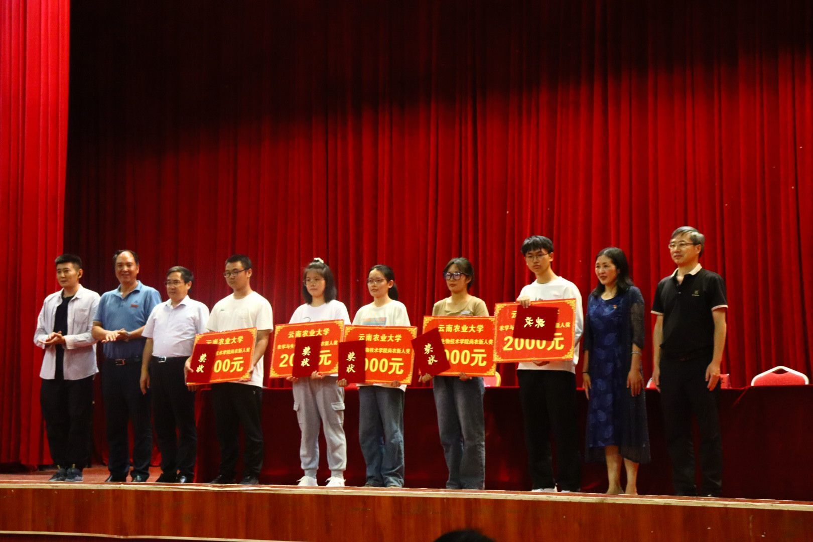 院领导和褚橙总经理助理杨晟昊,为学院各专业新生高考第一名颁发“尚农新人奖”证书和奖金。