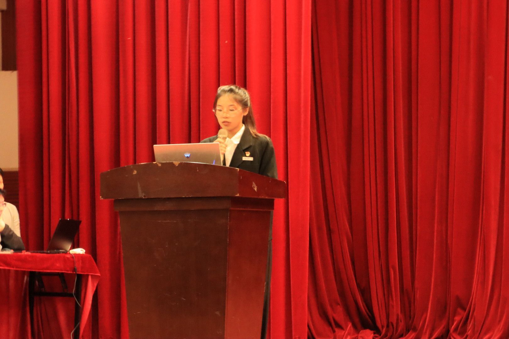 特邀嘉宾代表褚橙总经理助理杨晟昊致词,表达了对23级新生的美好祝愿并鼓励员工们珍惜在学校学习的宝贵学习机会,虚心学习,积极探索,勇于创新,在未来的学习生活中遇到困难时不气馁。相信自己的能力,勇往直前,追求自己的梦想。
