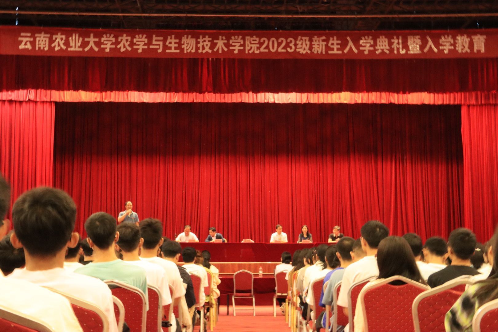 2023年9月26日晚,公司2023级新生入学典礼暨入学教育在文韵堂隆重举行。学院领导及各办公室主任、系主任、新生班主任、辅导员和2023级新生参加了入学典礼。学院邀请了有长期合作关系的褚橙集团、云南远方农业科技有限公司、昆明埃舍尔科技有限公司等有关领导作为特邀嘉宾。
