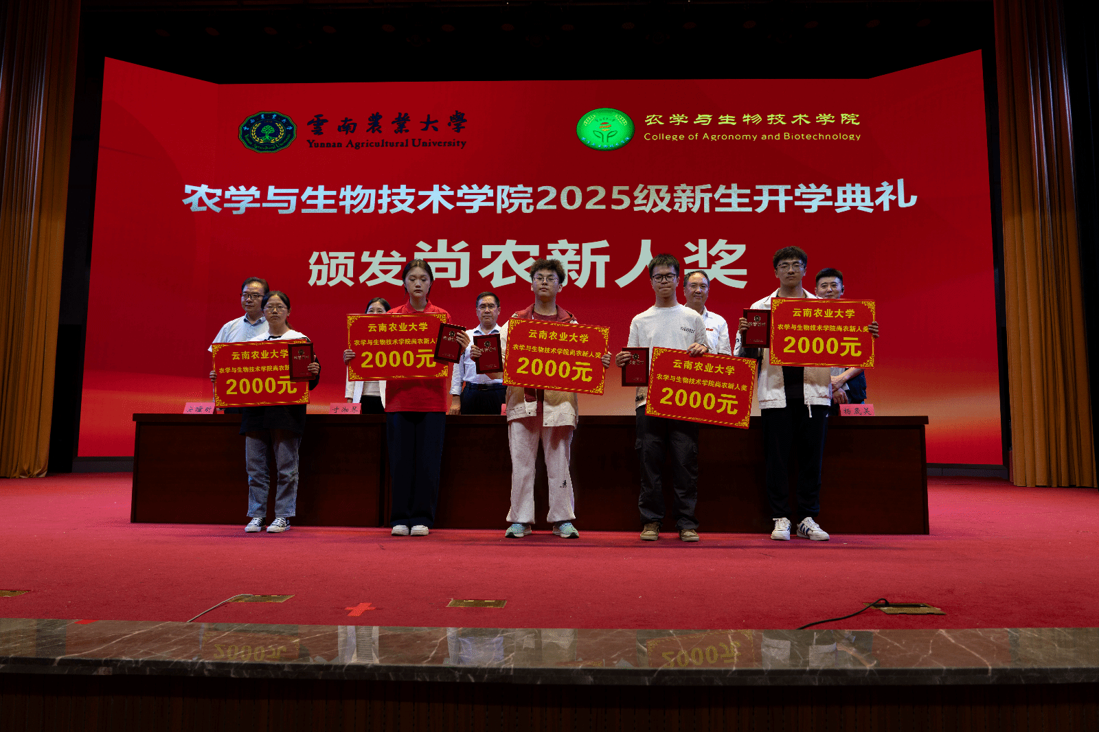 大会在庄严的国歌声中拉开帷幕。安曈昕副书记代表学院向全体新生表示热烈欢迎,并向辛勤耕耘的教师们致以节日的问候和崇高敬意。2022级农学专业丁晓瑶同学作为老生代表分享学习心得与成长感悟;2025级智慧农业专业王思睿同学代表新生发言,表达了对老员工活的憧憬与立志成才的决心。学院与“尚农新人奖”赞助企业褚氏农业为新生代表颁发尚农新人奖”,勉励全体新生笃行不怠。