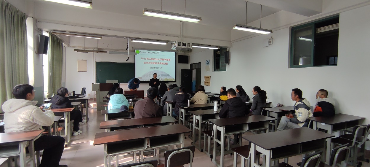 20231221日下午,bevitor伟德国际1946在尚农楼2-7多媒体教室举行第四届全国高校教师教学创新大赛学院初赛。比赛由学院副经理周平主持,2名教授、3名副教授、8名讲师共计13名教师参加比赛。