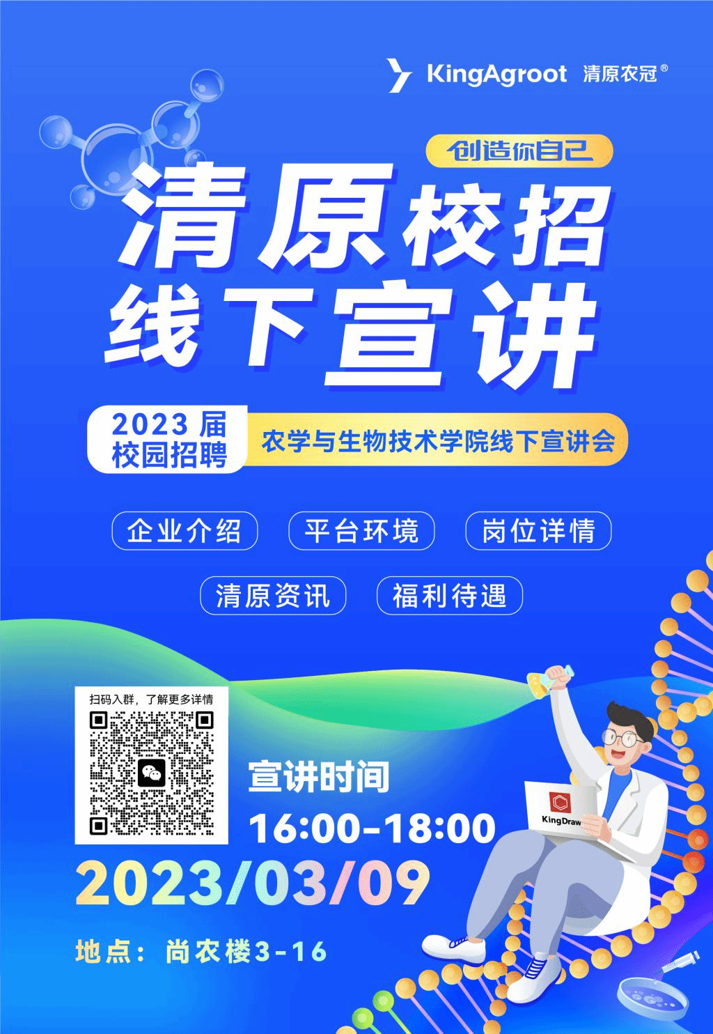 清原农冠定于2023年3月9日到公司召开专场招聘会,有意向同学带好个人简历等相关材料提前15分钟到场。