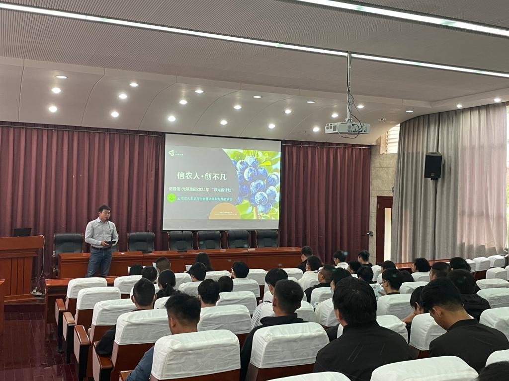 此次宣讲会,毕业班班主任杨友琼、戴榕、王源及就创工作联系人张应鹏四位老师分别带班到场参会,在宣讲会上光筑农业集团有限公司马进经理对公司、招聘岗位逐一做了详细介绍,并与同学们进行亲切交流、交换意见。