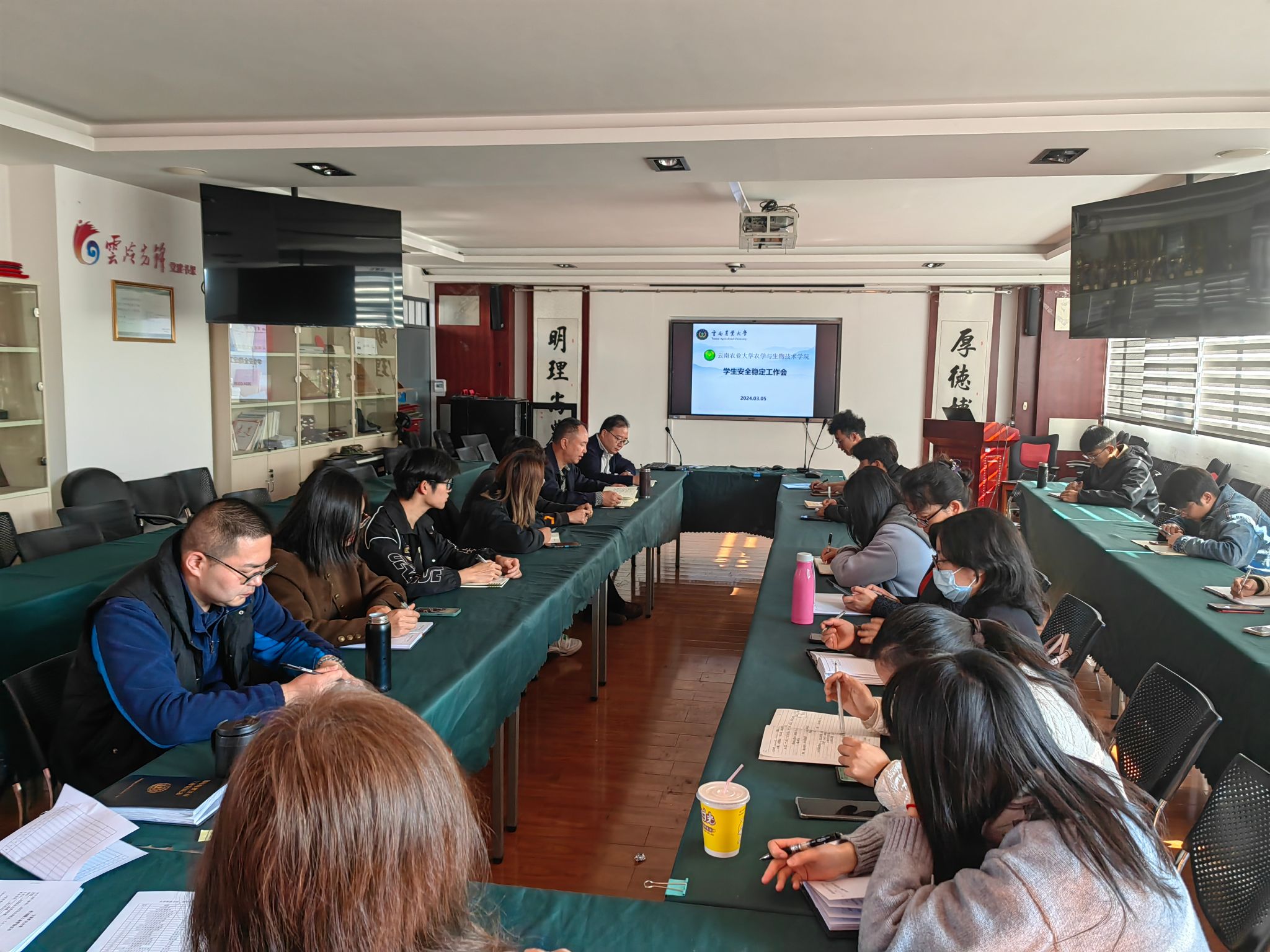 会议首先由李建宾经理传达了学校关于员工安全稳定相关工作会议精神并对下一步工作提出具体要求。李经理强调,员工安全稳定工作关系重大,是学校稳定发展的前提和校园健康发展的必然要求,全体教师要持续做好员工的安全稳定工作,确保学院工作有序安全开展。