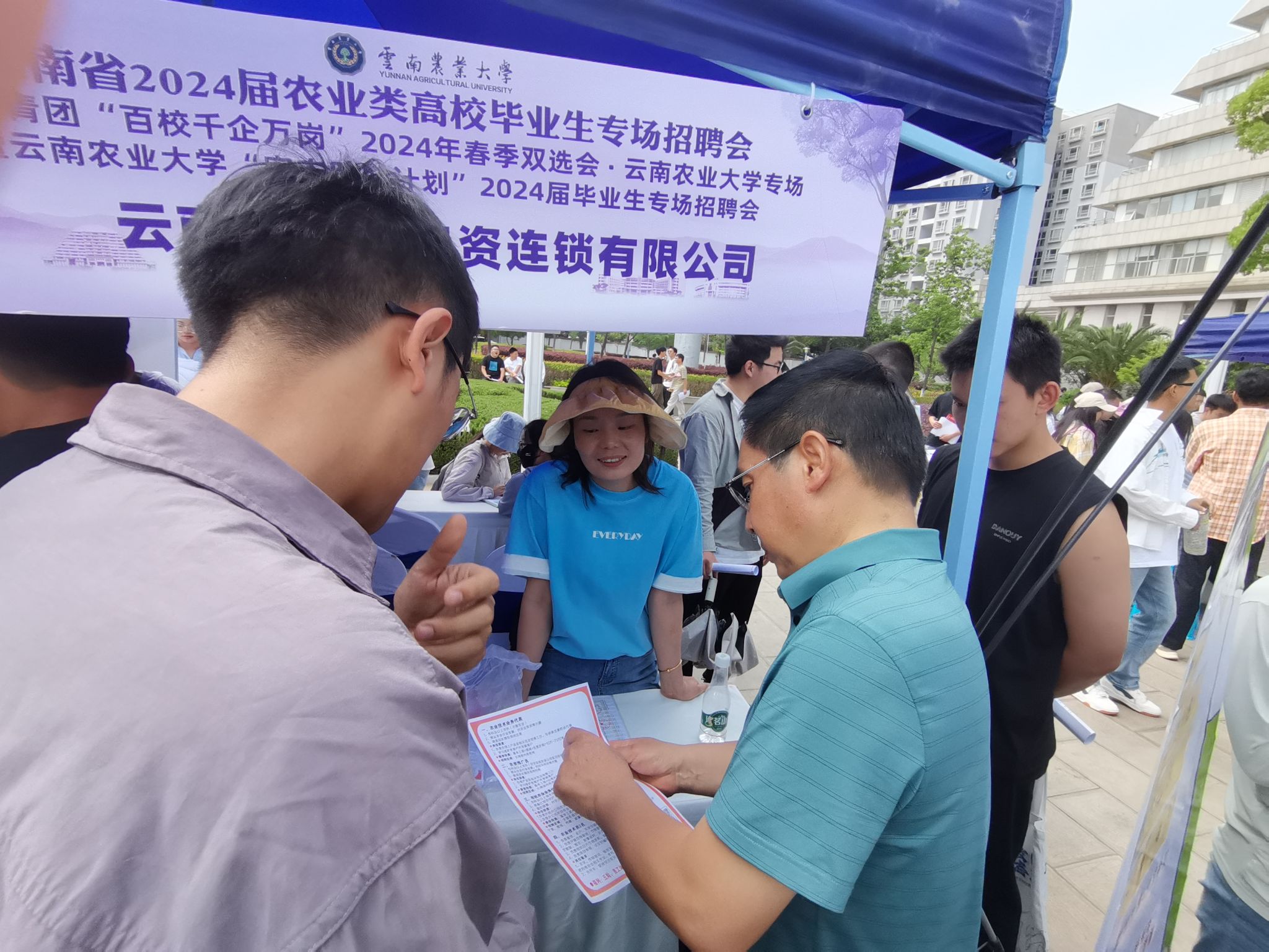 4月24日下午,公司在西校区至诚楼广场成功举办云南省2024届农业类高校毕业生专场招聘会暨云南共青团“百校千企万岗”2024年春季双选会、伟德国际1946bv官网“宏志助航计划”2024届毕业生专场招聘会。