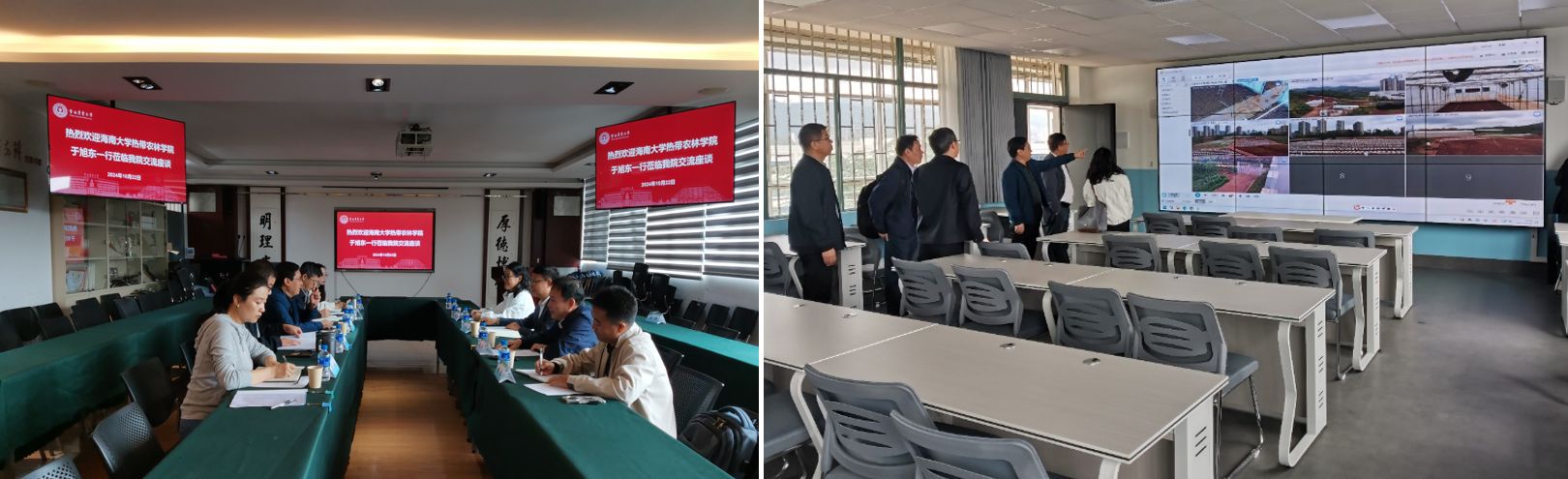 于旭东书记介绍了海南大学热带农林学院办学理念、专业设置、员工培养等情况,并就智慧农业专业建设进行了专题研讨。学院周平副经理对学院智慧农业专业的专业建设、课程设置和员工管理进行了交流研讨。双方参会教师开展了深入交流。双方希望今后以智慧农业专业建设为纽带,丰富交流方式,进一步在学术交流和员工培养等方面加强业务工作互动。会后与会人员参观了学院智慧农业专业实验室。