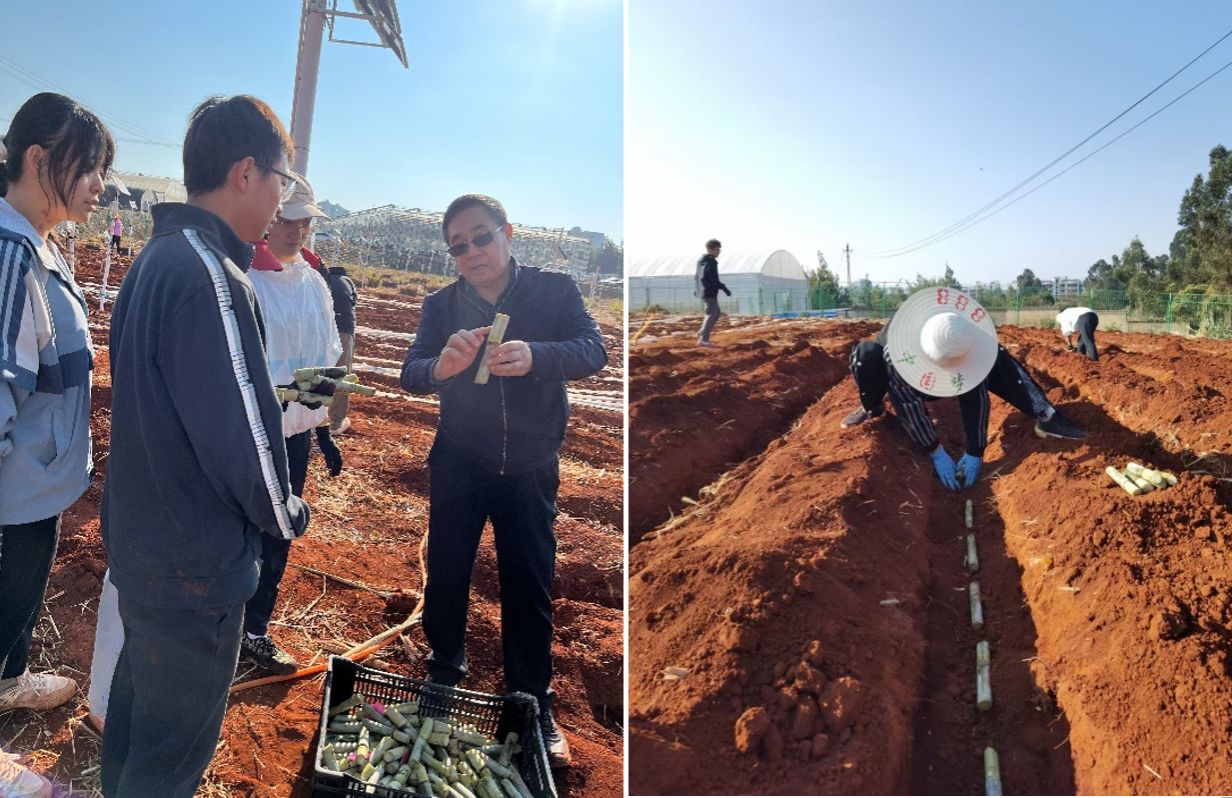 时隔一周,同学们在甘蔗资源圃进行了新植蔗的播种。公司党委书记、甘蔗所所长李富生教授等老师向同学们详细讲解了播种要求并进行了示范,带领同学们在刚刚收获的土地上又播种下了希望的种子。