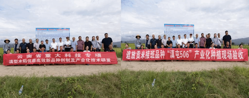 2023年8月30日,由公司国内合作与社会服务处朱仁俊处长组织并主持,在云南省科学技术厅、云南省农业农村厅、云南省农业技术推广总站、云南省种子管理站、云南省作物学会和德宏州市两级相关部门的支持下,在德宏傣族景颇族自治州芒市遮放镇进行的遮放贡米接班品种“滇屯 506”产业化种植现场验收传来喜讯。经现场实收测产,“滇屯506”千亩示范方平均亩产521.3公斤,实现了既优质又高产的目标,专家组一致同意通过现场验收。