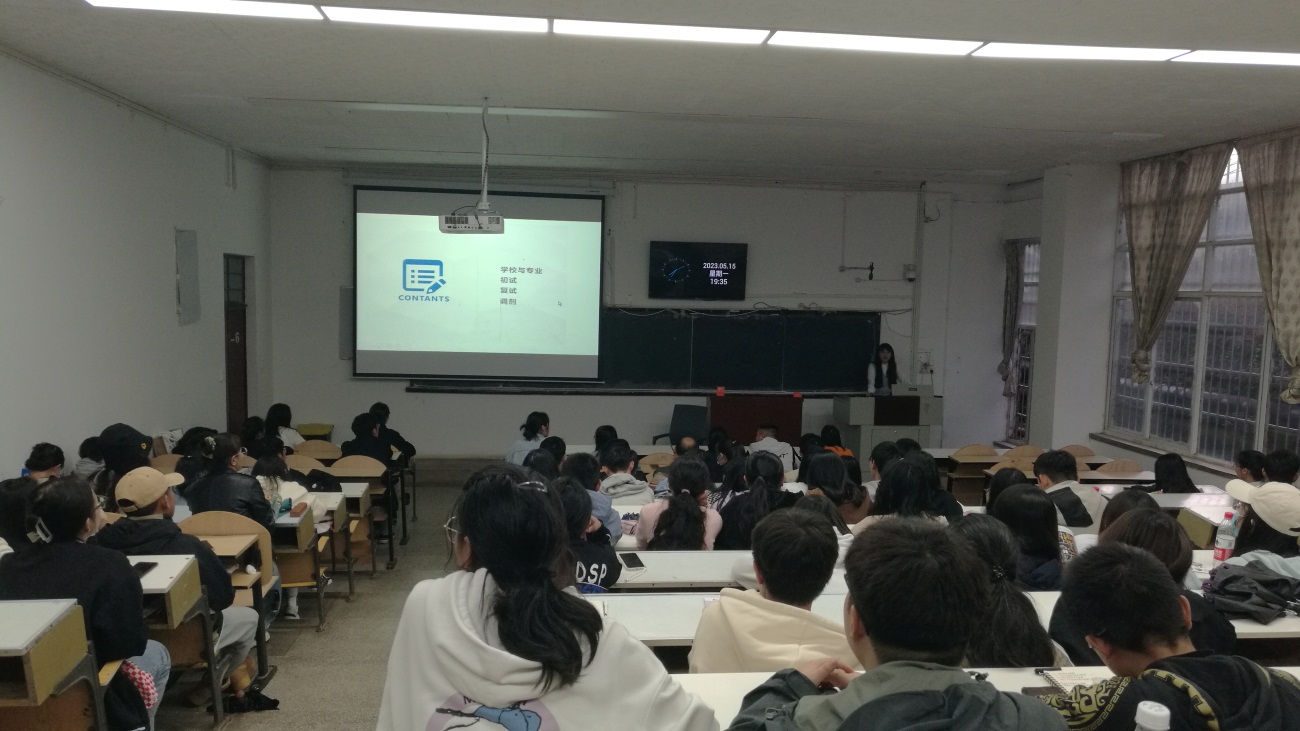 五位同学分别结合自己的考研经历详细地讲解了读研的必要性和在备考期间应注意的问题,包括各科的复习方法、相关的复习资料、考研信心的树立、考研计划、作息时间安排以及有关选择专业方向和复试等。王梦琪从专业学科评估、学校综合排名、专业课难易度等方面讲解如何选择适合自己的院校,以及在备考过程中保持好心态、自律性的重要性。她强调坚持的重要性,脚踏实地的去努力,按照自己的规划来,不跟别人比进度。