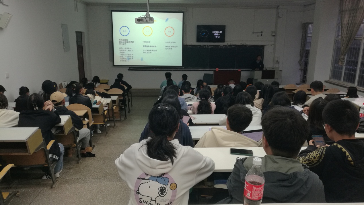 以上分享不仅为即将考研的同学提供了宝贵的经验,也为立志考研的同学指明了方向,使同学们在备考的过程中有了一个更具体、清晰的认识,对考研信心倍增。会议在热烈的掌声结束。