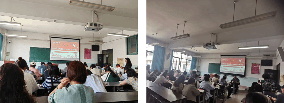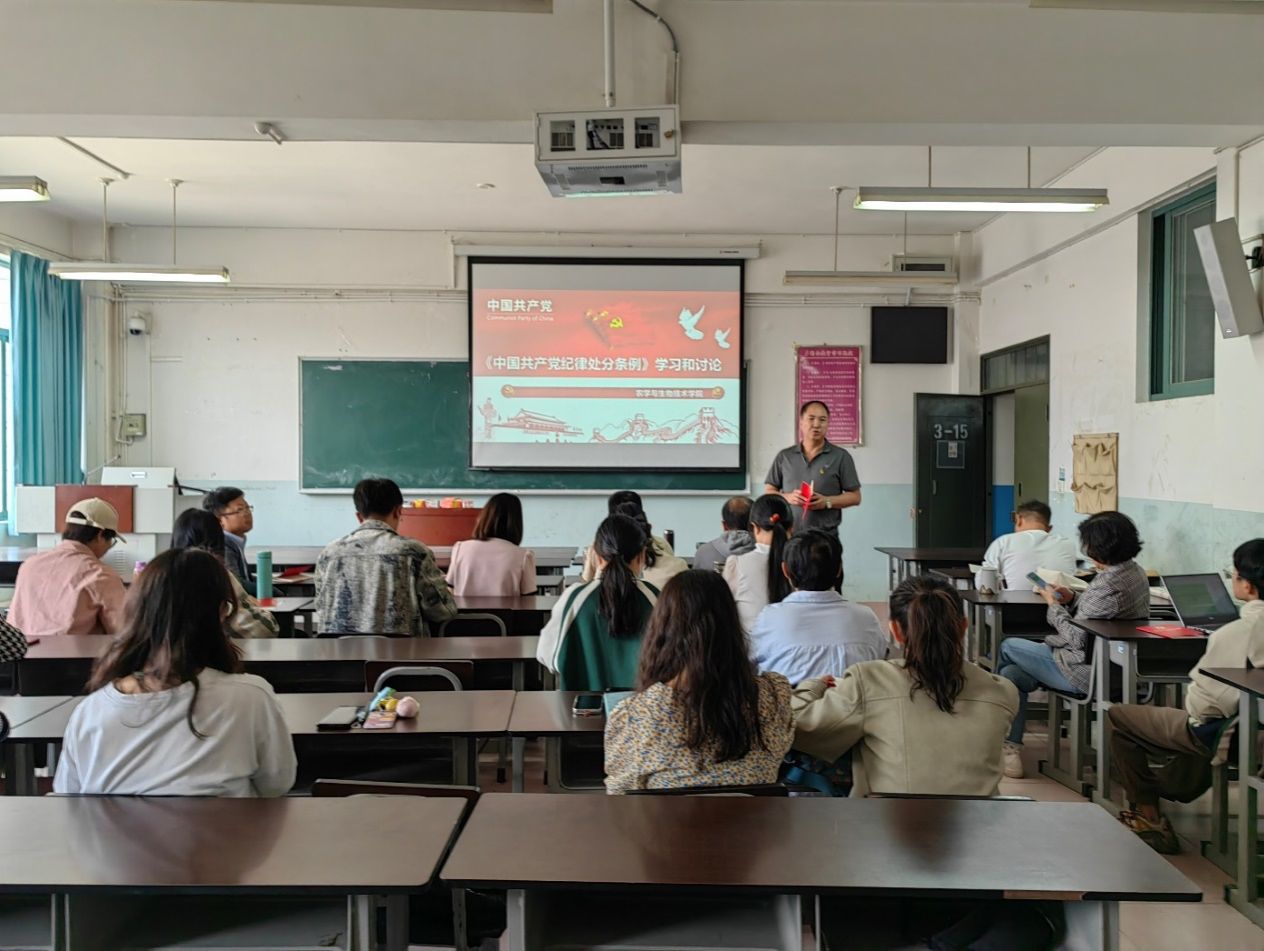 党支部深入学习贯彻习近平总书记关于加强党的纪律建设的重要论述,认真学习了中共中央办公厅印发的《关于在全党开展党纪学习教育的通知》精神,准确把握党纪学习教育的目标要求,逐章逐条学习新修订的《中国共产党纪律处分条例》。会上,党员同志结合自身教学工作和《中国共产党纪律处分条例》修订内容等进行了深入交流学习,大家对《中国共产党纪律处分条例》修订的重要意义有了更全面的认识,进一步增强了纪律意识,提高了党性修养。