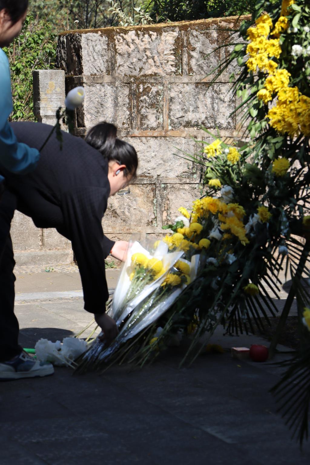 4月5日,农学院22种子、22农学2班、22生技和植保学院22植检共200余同学手捧鲜花,怀着对烈士的敬仰之情来到到黑龙潭公园烈士陵园。上午十时,哀悼活动正式开始。主持人首先为大家讲述了革命烈士的英勇事迹,随着这段感人肺腑、荡气回肠的历史在大家的眼前重现,同学们有感而发。四个班的员工代表发表了真挚感言,人民英雄不朽的精神会被永远铭记在人民心中,他们的英勇事迹会被永远传颂在祖国大地之上!随后,同学们庄严地将自己手中一支支洁白的鲜花轻轻的放到烈士陵墓前并一一鞠躬。他们用自己的方式,怀着最赤诚的一颗心,来告慰那些远在天涯,却又活在人民心中的英烈!最后,全体人员向烈士默哀三分钟,向革命先烈表达深沉的哀思和无尽的怀念。