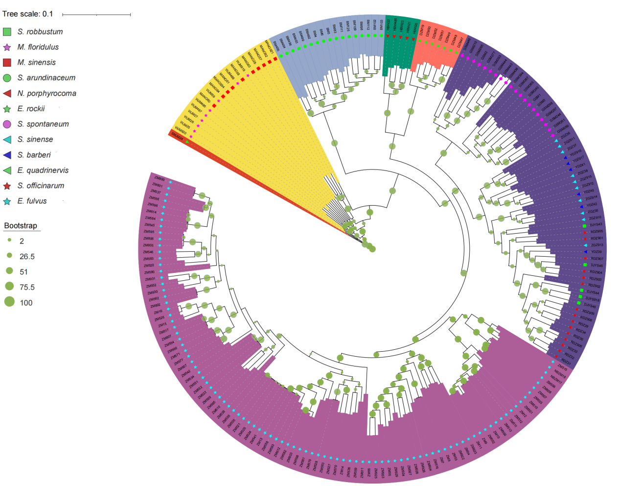 图3 基于全基因组SNP的最大似然(ML)系统发育树