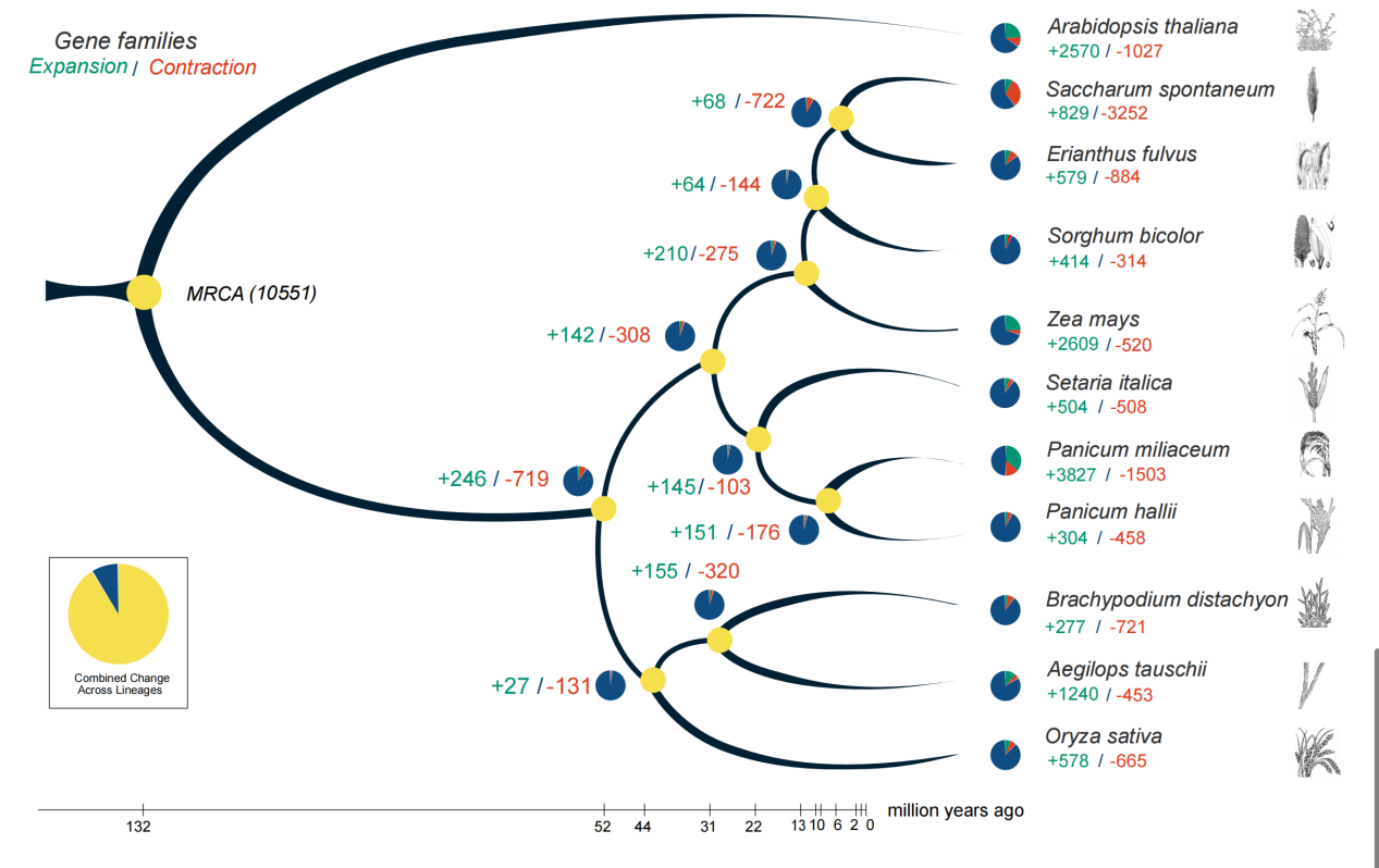 在甘蔗育种中,通常认为决定其产量和蔗糖分性状的基因来源于甘蔗热带种,而抗逆基因则主要来源于细茎野生种,在目标性状基因聚合过程中,客观上存在不利基因的连锁问题,因此,试图单纯依赖常规杂交育种实现高产、高糖、抗病虫性和抗逆(旱、寒等)等多种性状兼具的聚合品种几乎是不可能的,所以常规杂交育种途径培育的商业化种植品种,总存在某些性状的不足。蔗茅是甘蔗属复合体植物中染色体数目最少(2n=20)、基因组最小(902Mb)的野生种资源,相对于甘蔗基因组大,遗传背景复杂,收获物蔗茎为营养体导致产量、品质等性状的表现受环境因素影响大等缺点,蔗茅在甘蔗基因工程育种中具有良好的优势,有望作为甘蔗遗传育种的“模式植物”。所以,蔗茅的全基因组测序是甘蔗基础生物学研究的一个里程碑,这可能有助于育种家未来的渐渗计划,探究甘蔗染色体遗传规律,加速甘蔗的高贵化育种过程做出卓越贡献。