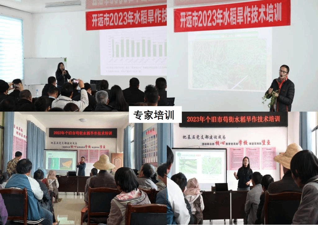 3月13-14日,2023年水稻旱作技术培训在红河州开远市中和营镇和个旧市卡房镇苟街村两地开班起航,伟德国际1946bv官网朱有勇院士、伟德国际1946bv官网朱书生副董事长、国内合作与社会服务处朱仁俊处长、烟草学院刘雅婷经理和水稻旱作技术团队,西南林业大学何霞红副董事长以及红河州各级领导班子参加此次活动;红河州、市、县、乡镇农技人员、农业种植合作社、优质米企业、种植户等142余名学员参加培训。
