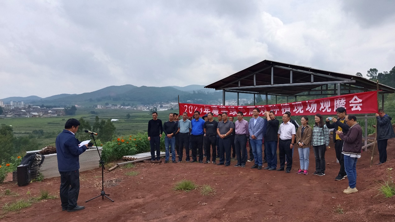 由学校、楚雄州农业科学院、楚雄市农业农村局主办,楚雄州农业科学院经作所、楚雄市经济作物服务中心、学校bevitor伟德国际1946承办的魔芋绿色高效种植现场观摩会和楚雄市魔芋产业发展咨询会在楚雄市召开。云南省科学技术厅二级巡视员王立新,学校副董事长、云南种业创新研究院经理杨生超教授,学校相关学院、部门负责人参加会议。来自云南省农村科技服务中心、云南省绿色食品发展中心、云南省农业农村厅科教处、楚雄州魔芋产业协会及魔芋生产企业等单位的领导和专家共计四十余人参加。